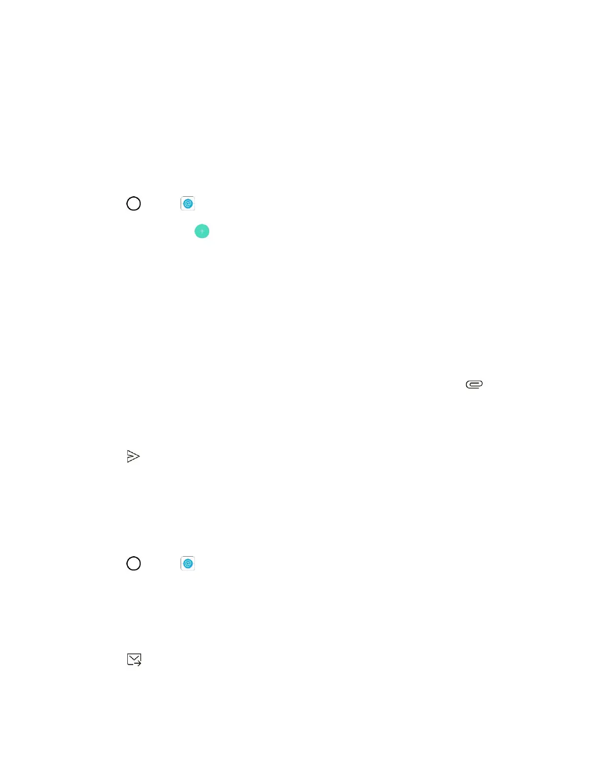 To add an attachment (such as picture, video, contact, event, audio, etc.), tap .