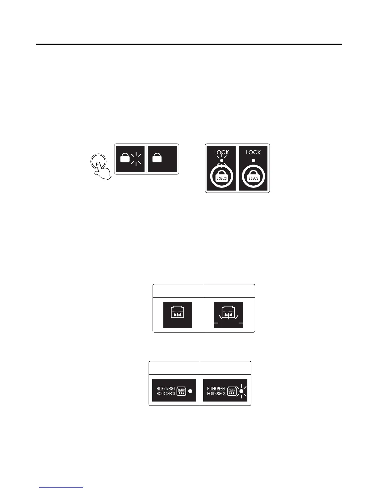 4. After replace the filter, press and hold the lock button more than 3seconds.
