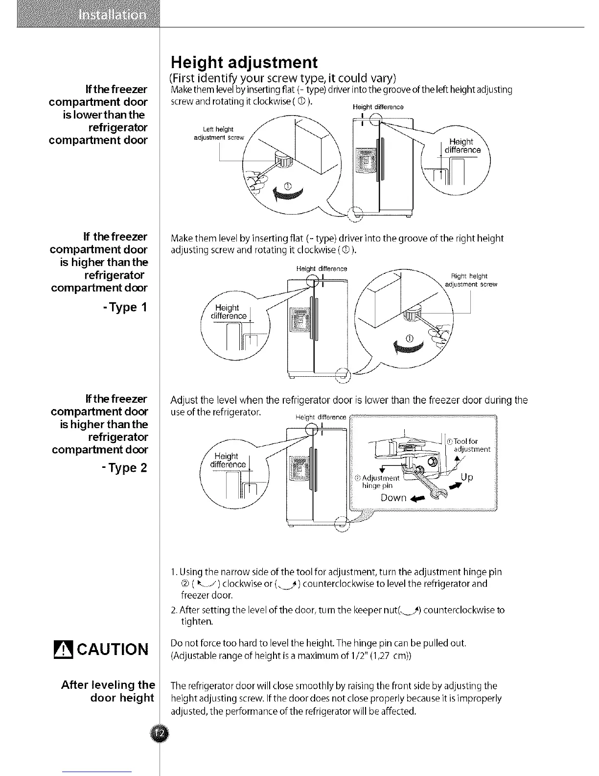 useofthe refrigerator. Heightdifference