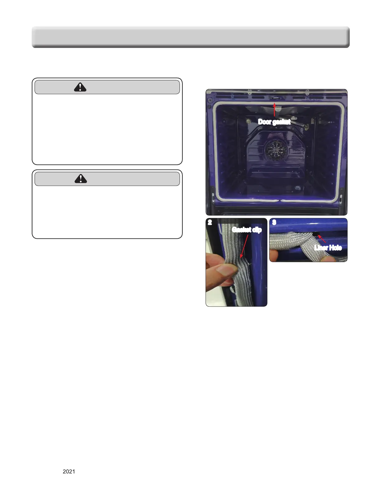 2. Pull the oven door gasket clips out of the liner