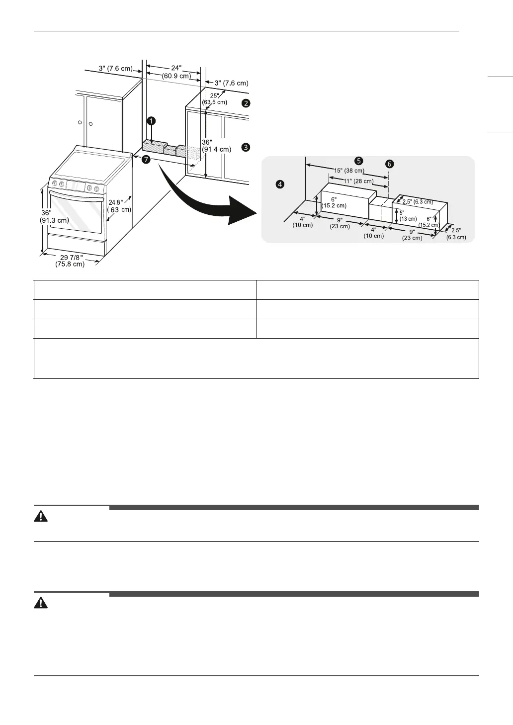 • Make sure wall coverings, countertops and cabinets around the range can withstand the heat (up to 194