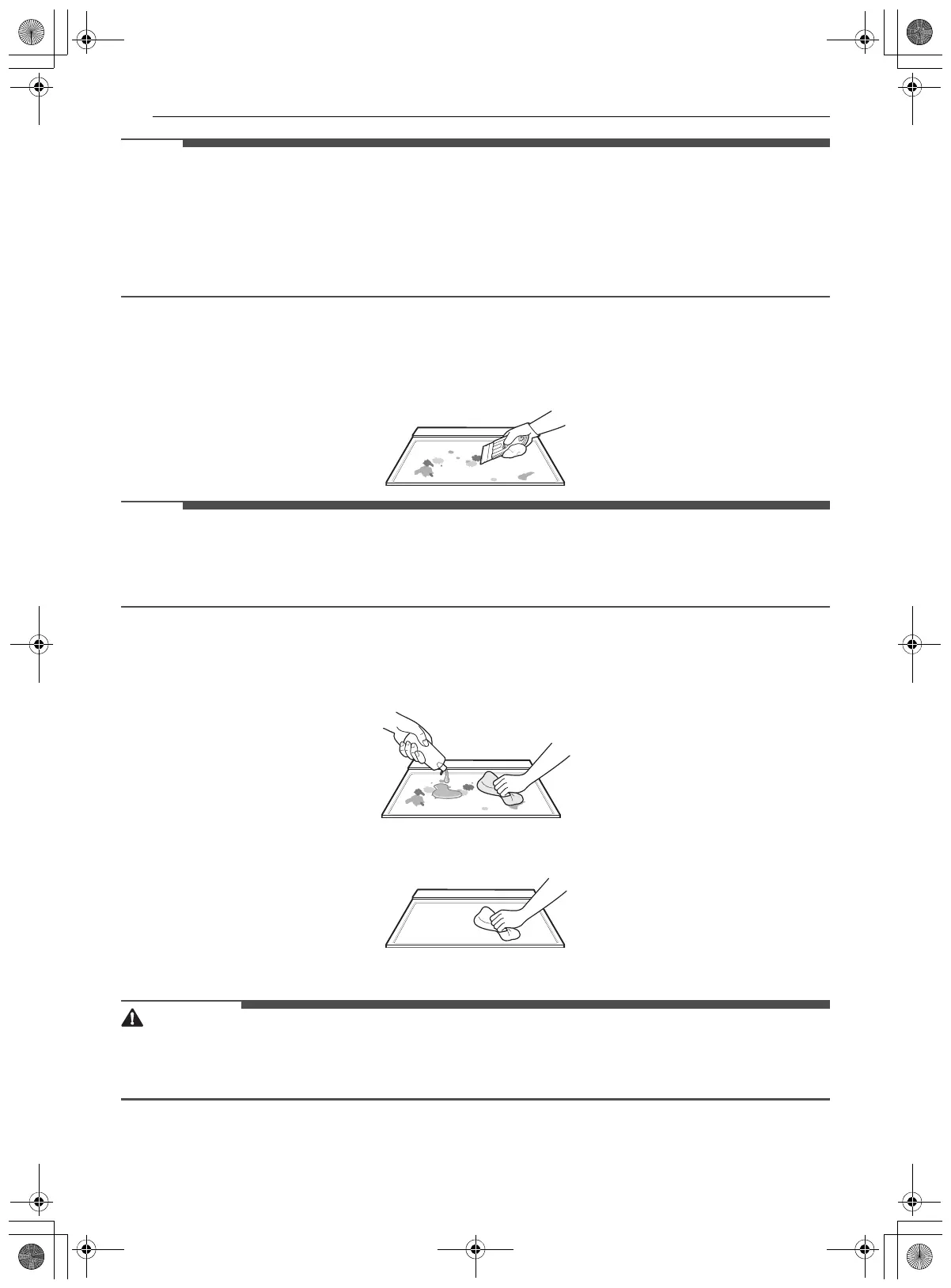 1 While the cooktop is still warm, remove any burnt on deposits or spilled food from the glass-ceramic