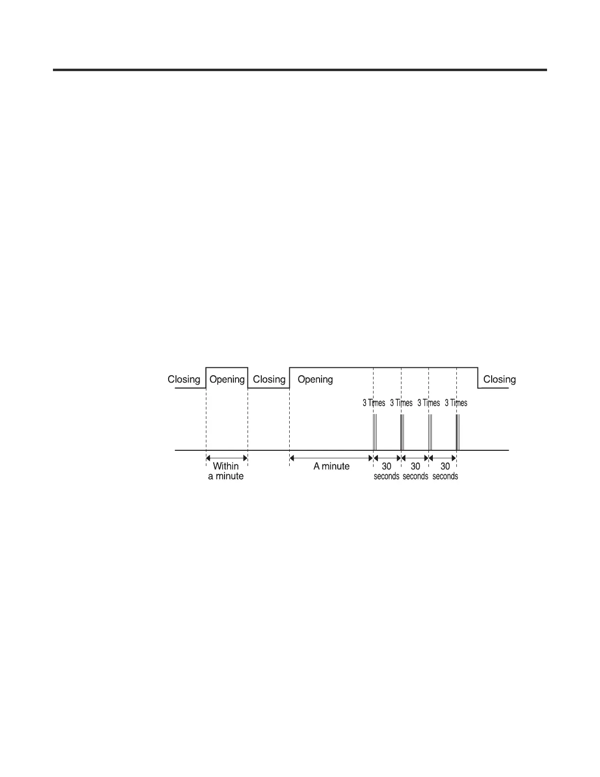 2. Buzzer rings three times in the interval of 0.5 second after the first one-minute has passed after doors are opened and then