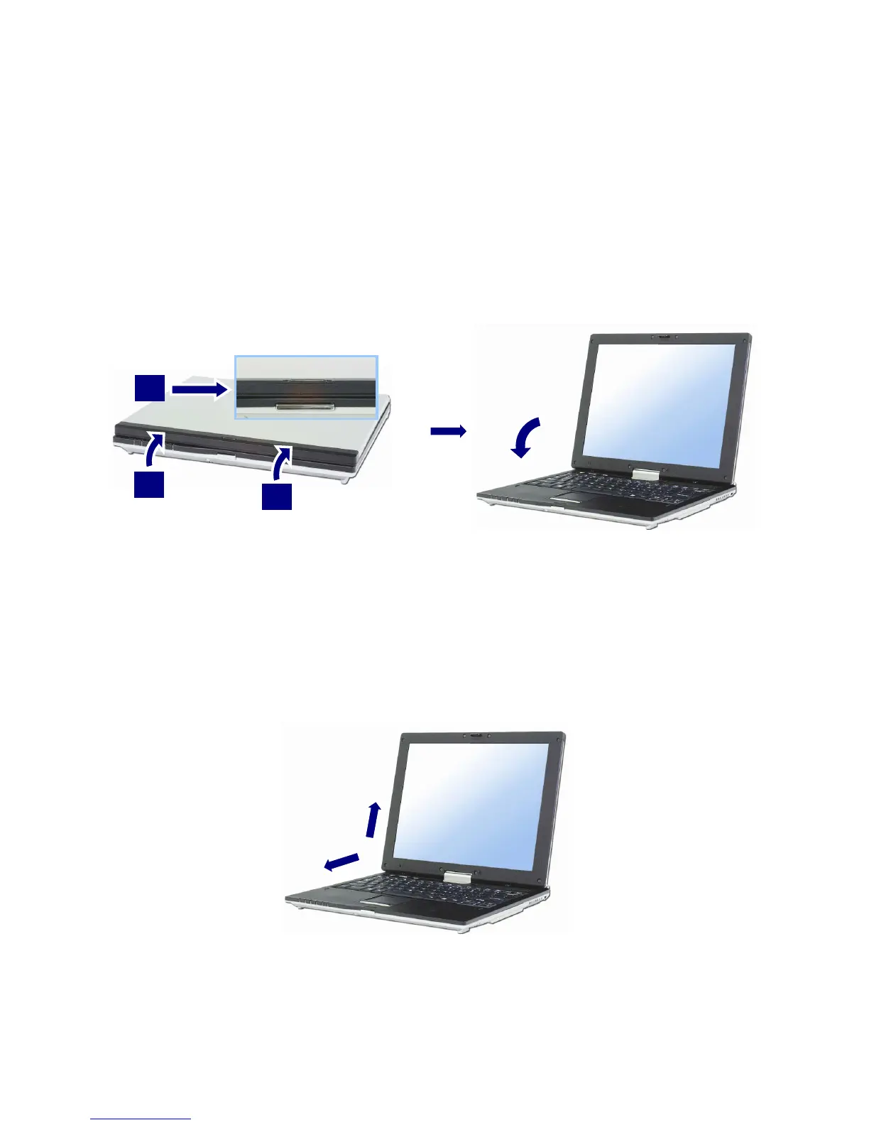 Push the latch button in the direction of the arrow1, and open the display
