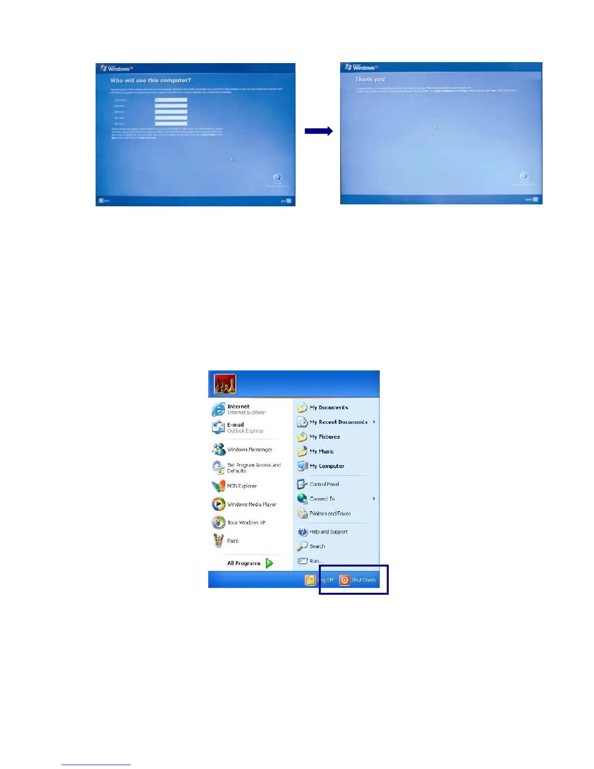 Quit all running applications; click [Start] and choose [Turn Off Computer]