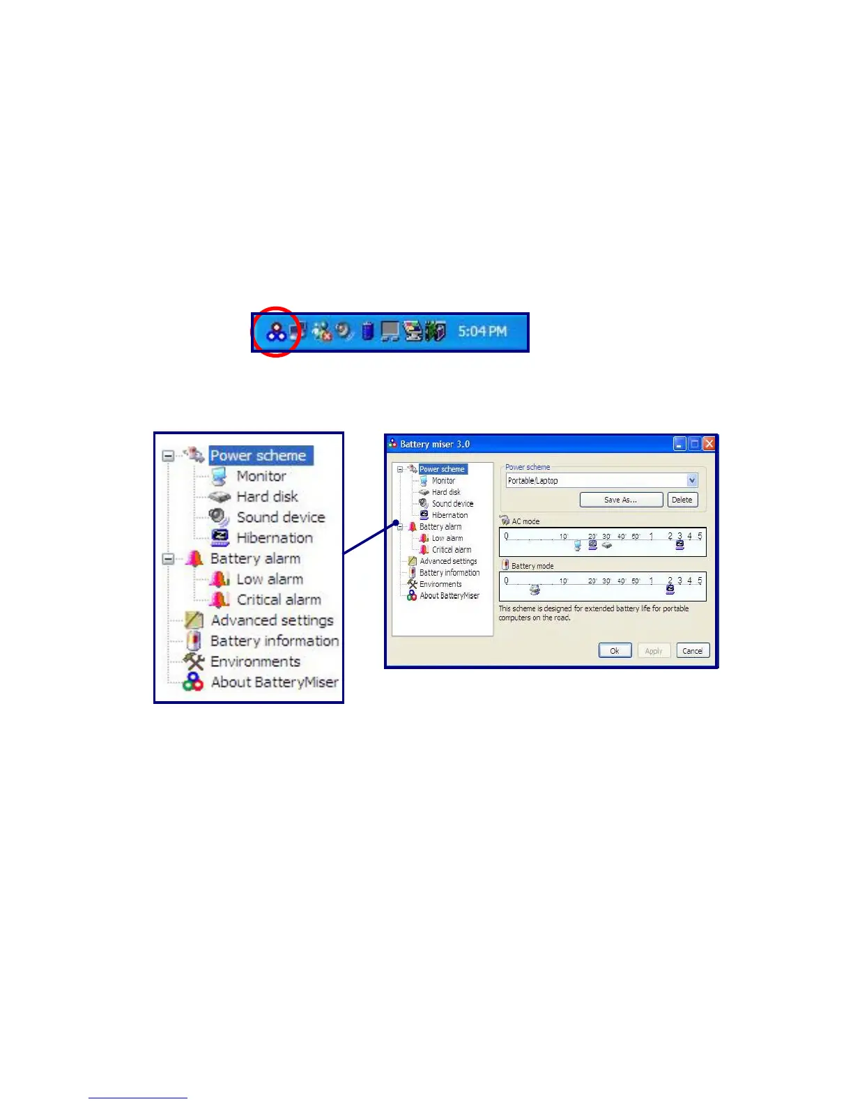 For more detailed information, refer to [About Battery Miser]