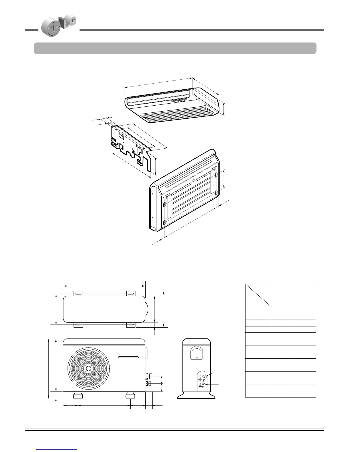LG LV-B2464HL - LG Air Conditioner Dimensional Drawings