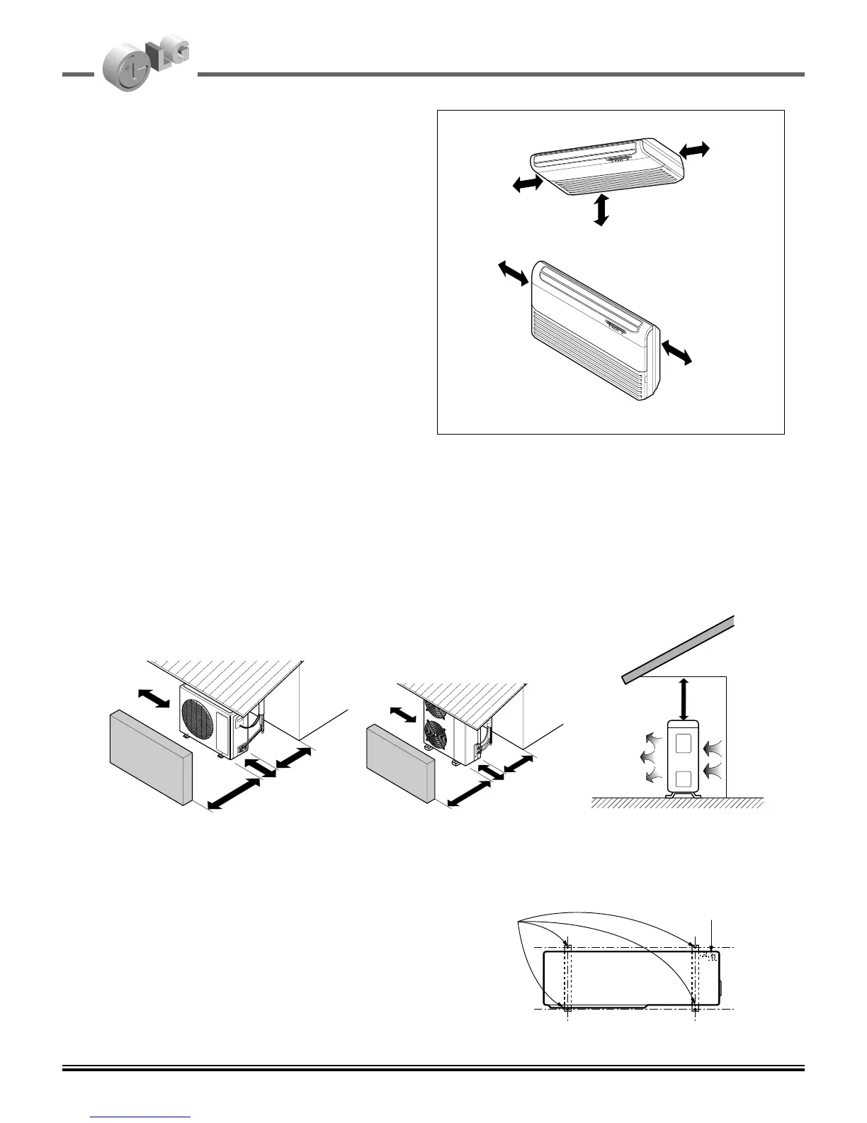 • Take the air conditioner weight into account and select a place where noise and vibration are minimum.