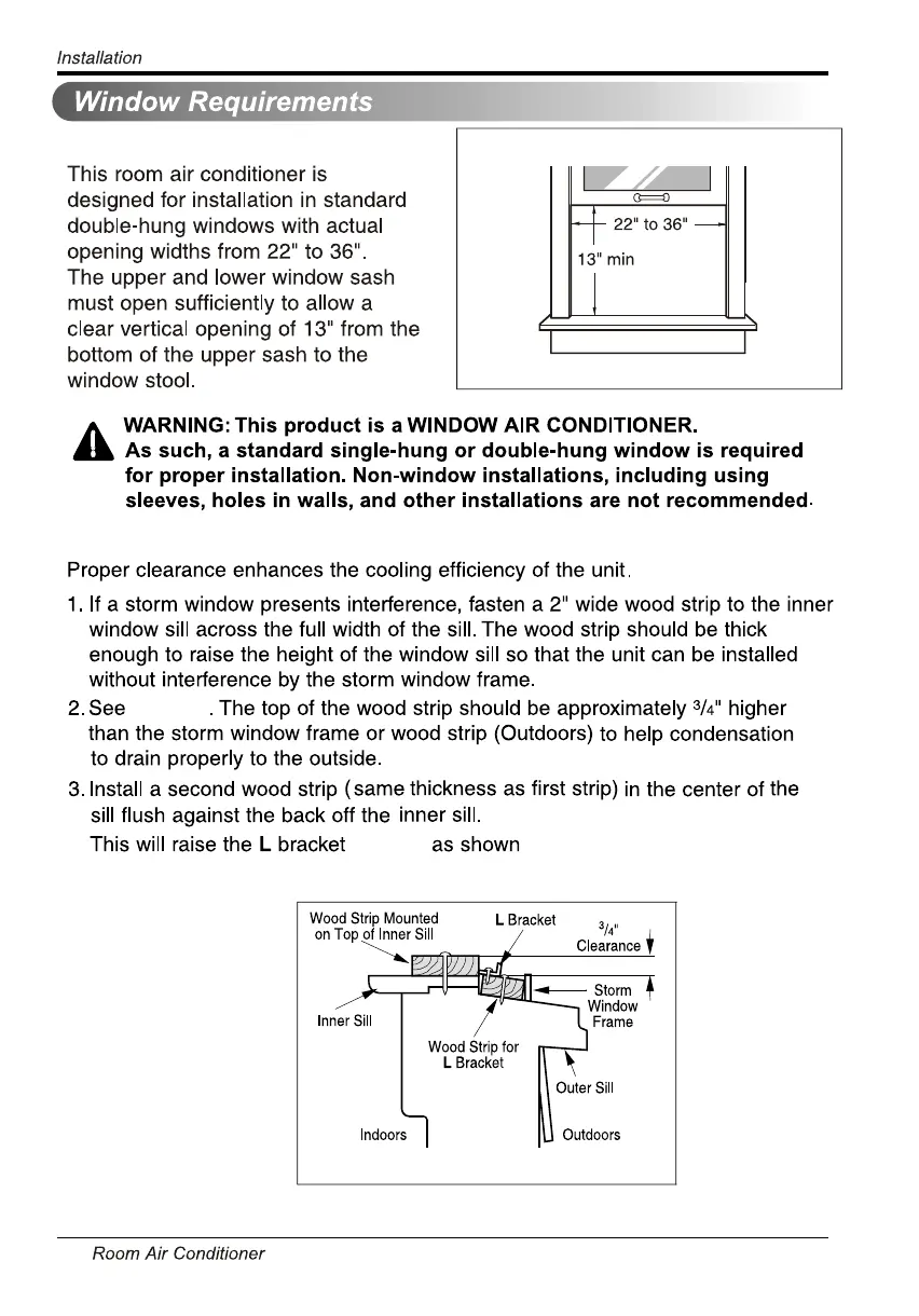 LG LW6015ER - Installation - Window Requirements; Size Specifications; Clearance for Efficiency