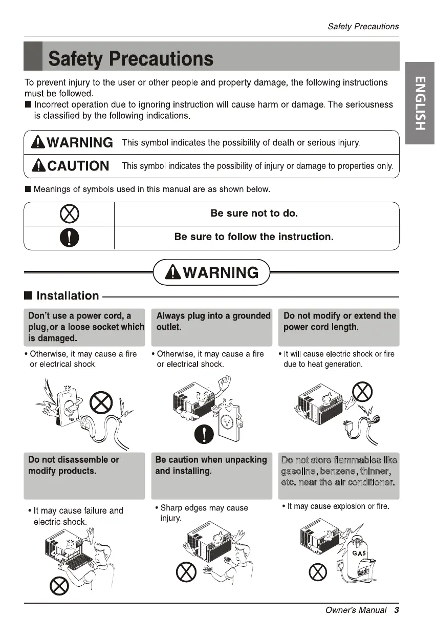 LG LW6015ER - Safety Precautions - Installation; Installation Safety Guidelines