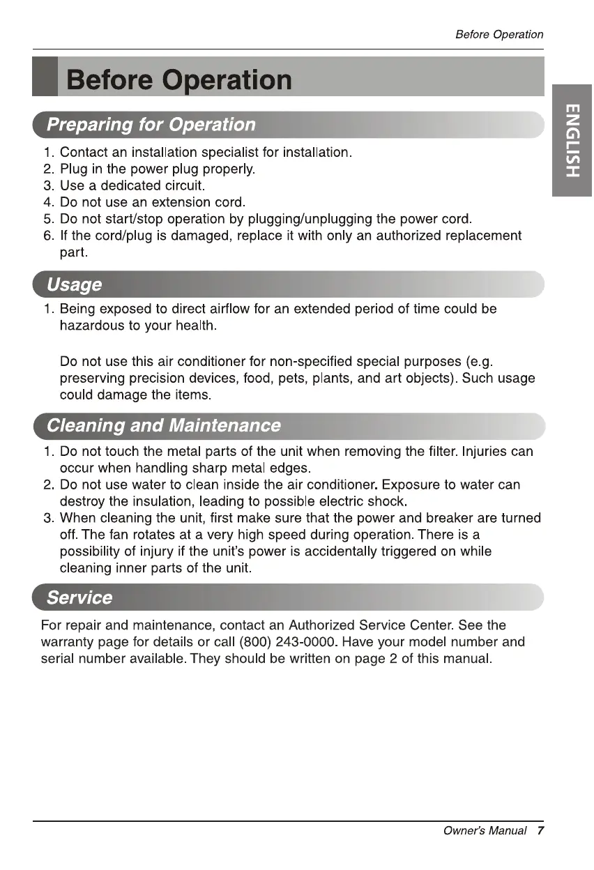 LG LW6015ER - Before Operation; Preparing for Operation Steps; Usage Guidelines; Cleaning and Maintenance Basics