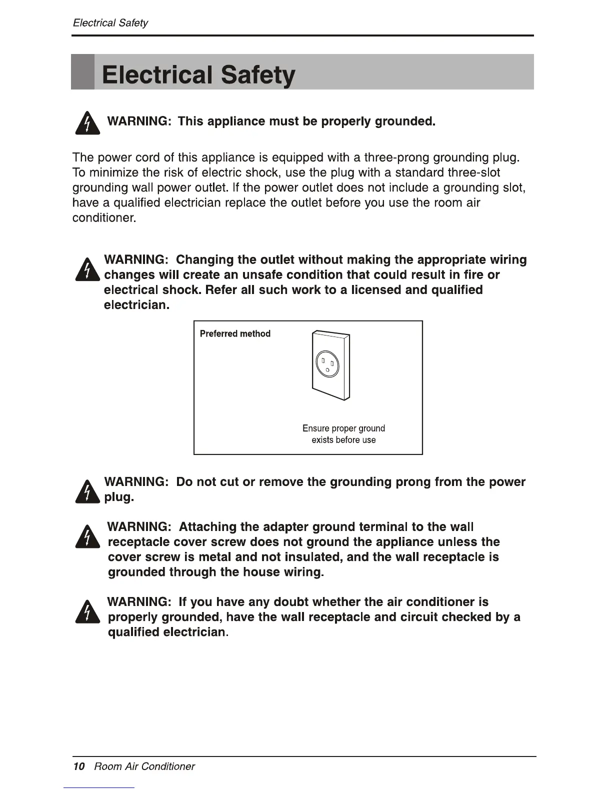 LG LW6511R - Electrical Safety Warnings; Proper Grounding Practices; Plug and Outlet Modification Warnings