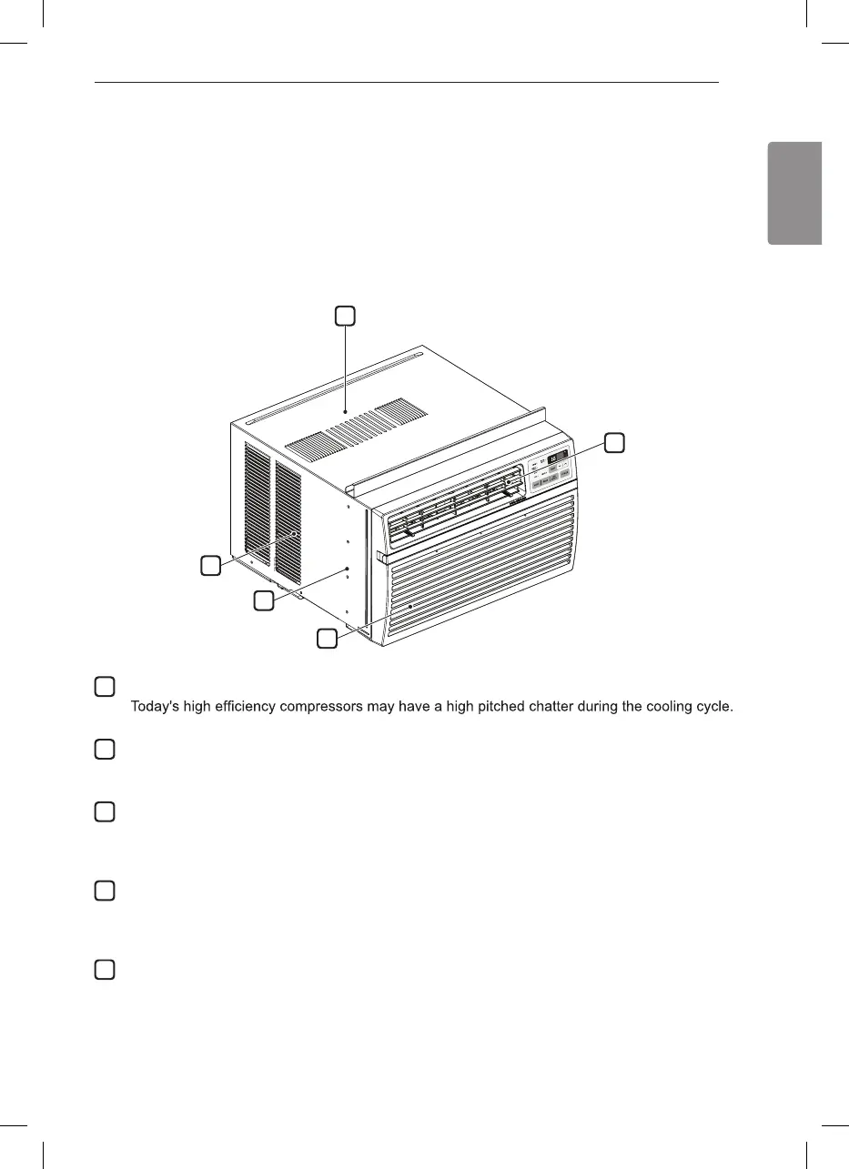 Unit may vibrate and make noise because of poor wall or window construction or incorrect