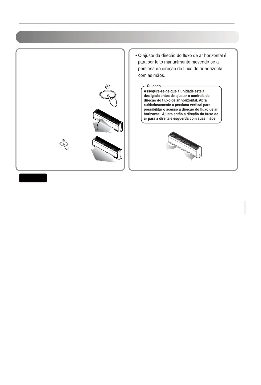 • Use sempre o controlo remoto para ajustar a direcção de fluxo de ar para cima e para baixo.