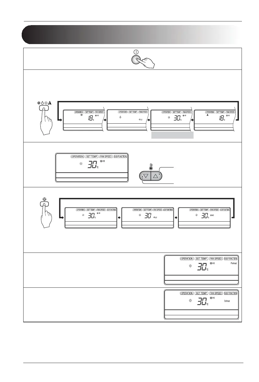Cada vez que o botão for pressionado, o modo de operação é alterado na direcção da flecha.