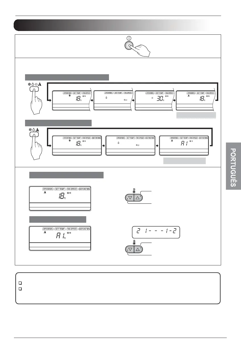 Cada vez que o botão for pressionado, o modo de operação é alterado na direcção da flecha.
