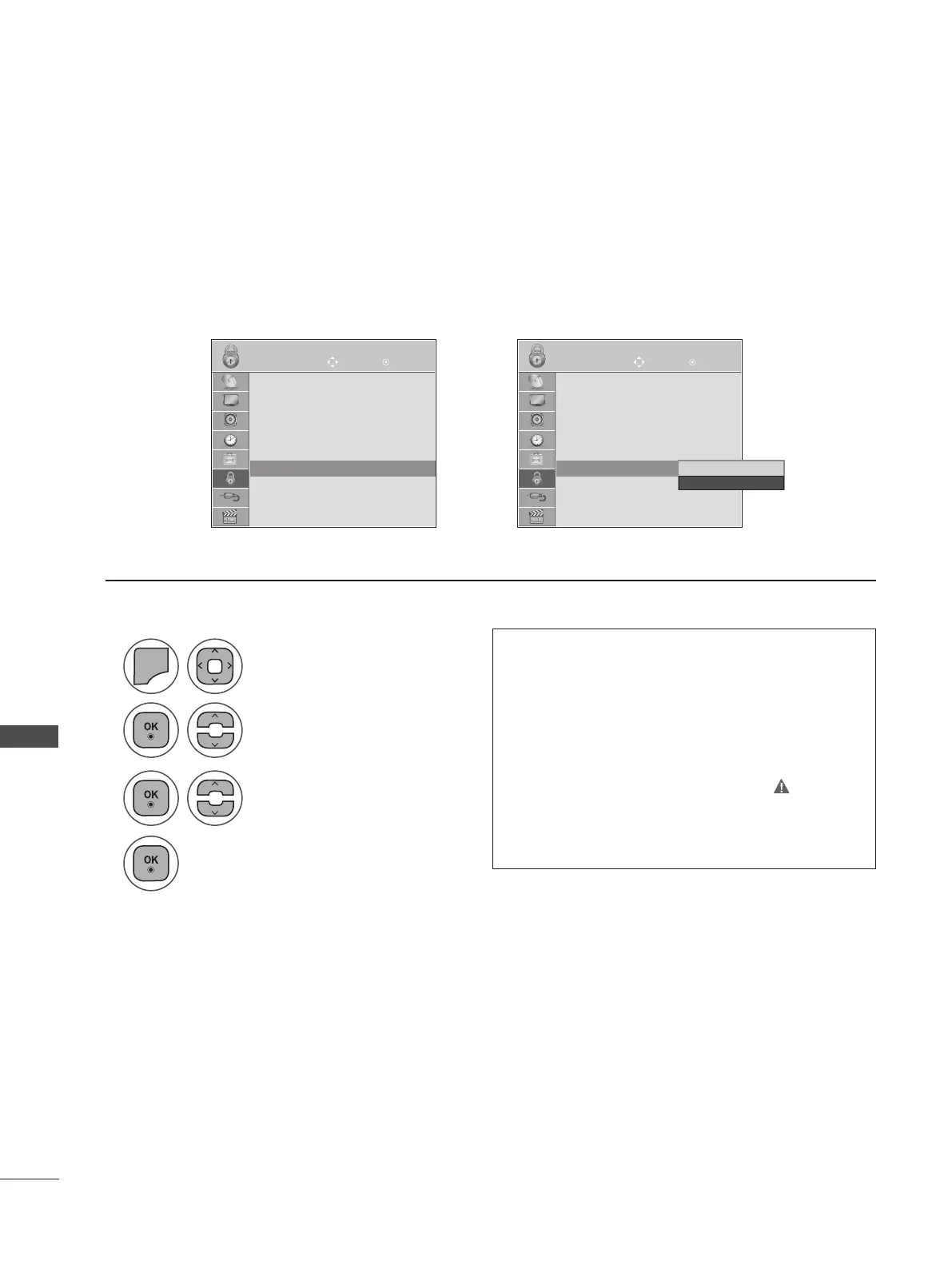 The TV can be set so that the remote control is required to control it. This feature can be used to prevent