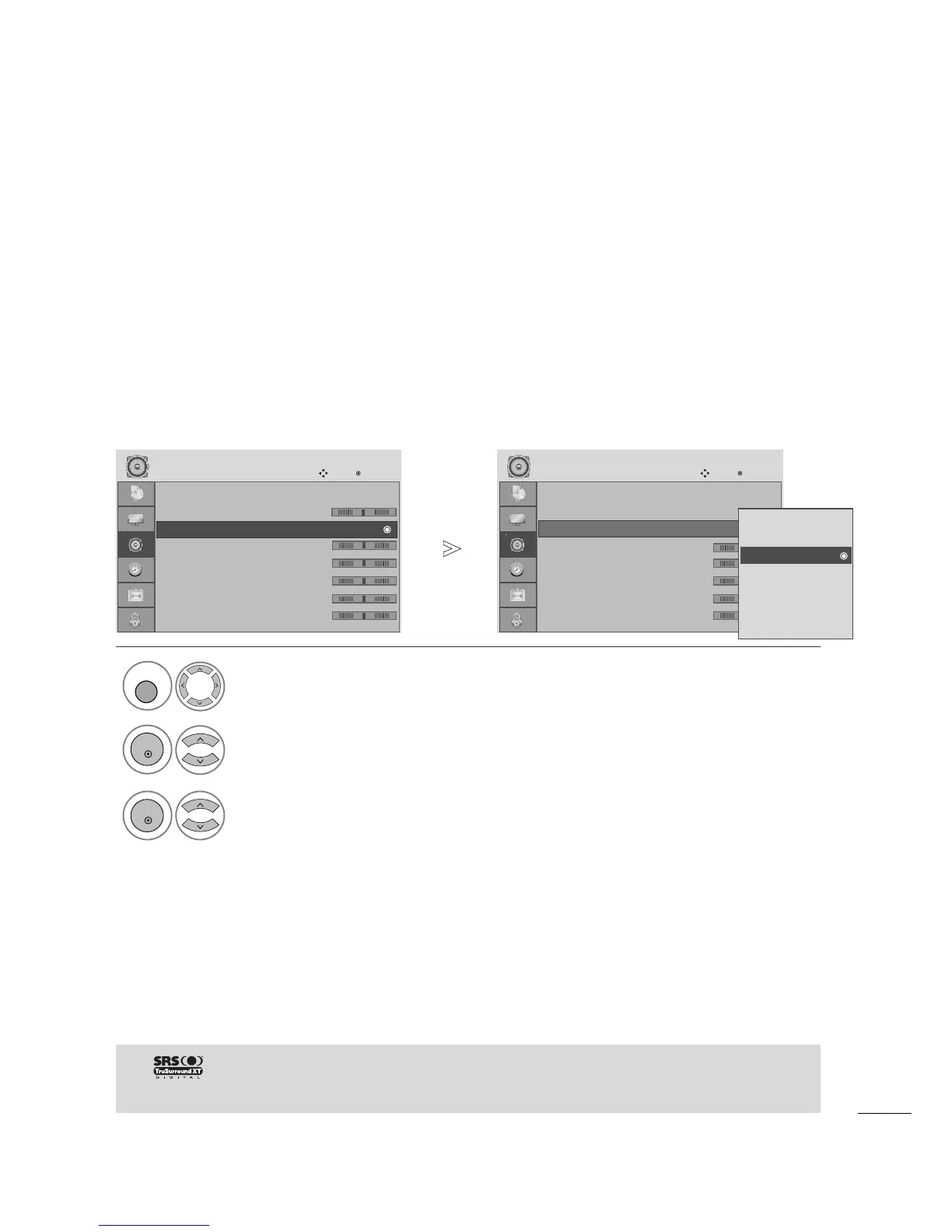 Select SRS TruSurround XT, Clear Voice, Standard, Music, Cinema, Sport or Game.