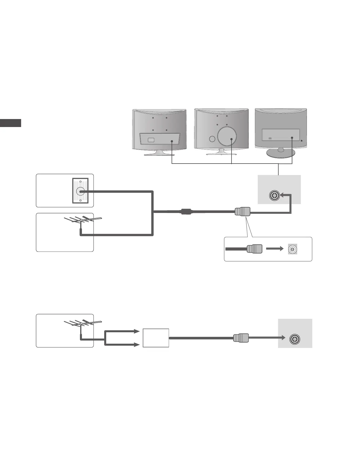 ■ If signal needs to be split for two sets, use an antenna signal splitter for connection.