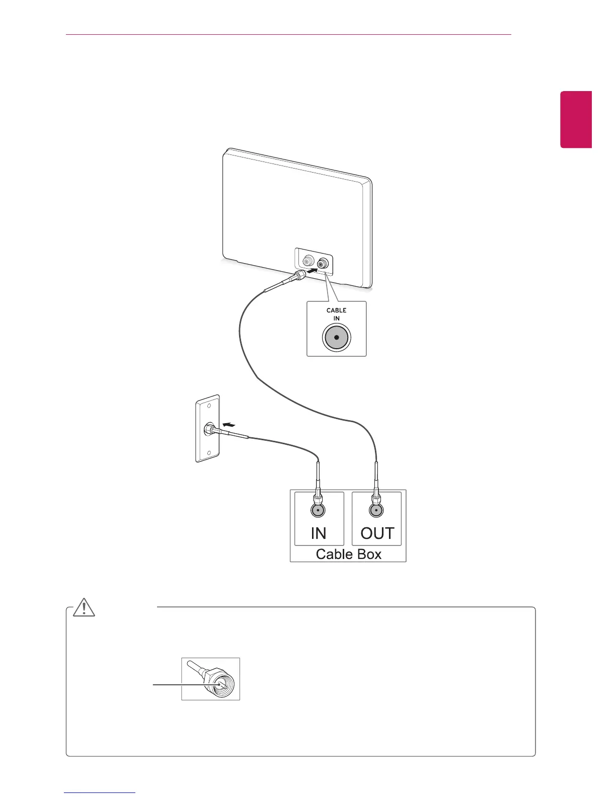 Connect the TV to a cable box and the cable box to a wall antenna socket with 2 RF cables (75 ohm).