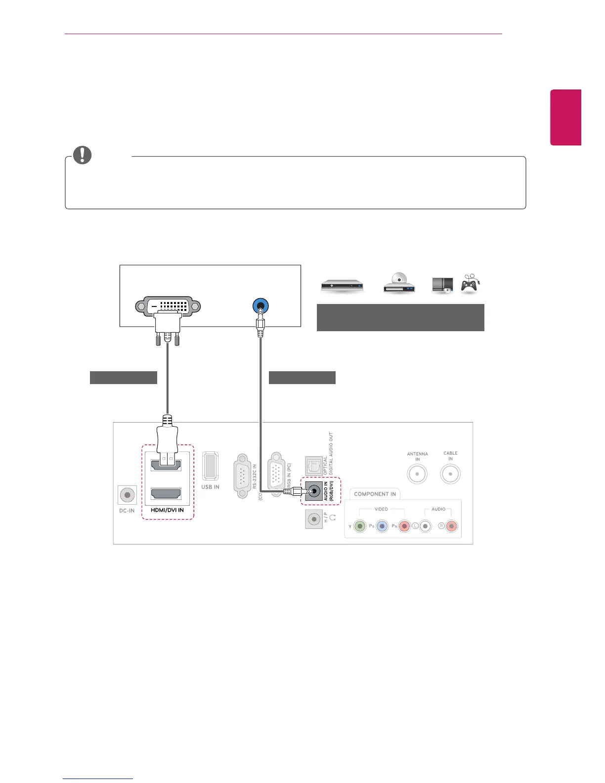 Transmits the digital video signal from an external device to the TV. Connect the external device and the TV