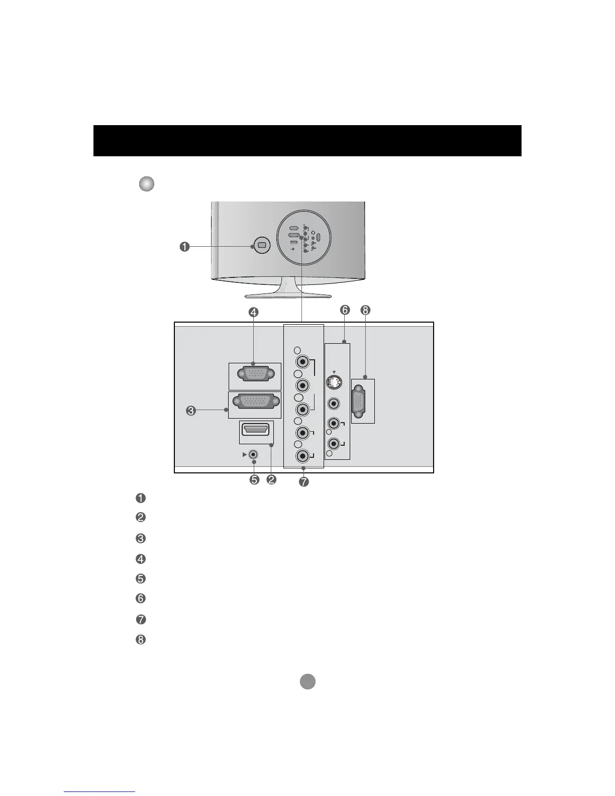 RGB, DVI Sound Jack : Connect to the jack in the PC sound card or D-TV sound Output Jack.