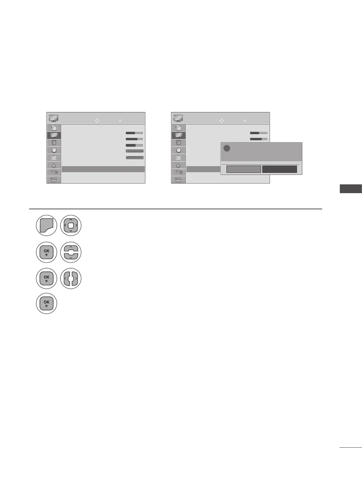 Settings of the selected picture modes BACK to the default factory settings.