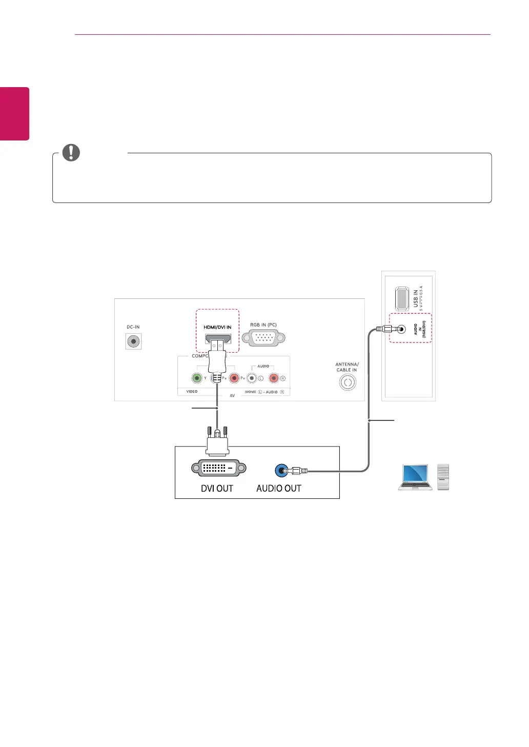 If you do not use an optional external speaker, connect the PC to the TV with the optional audio cable.