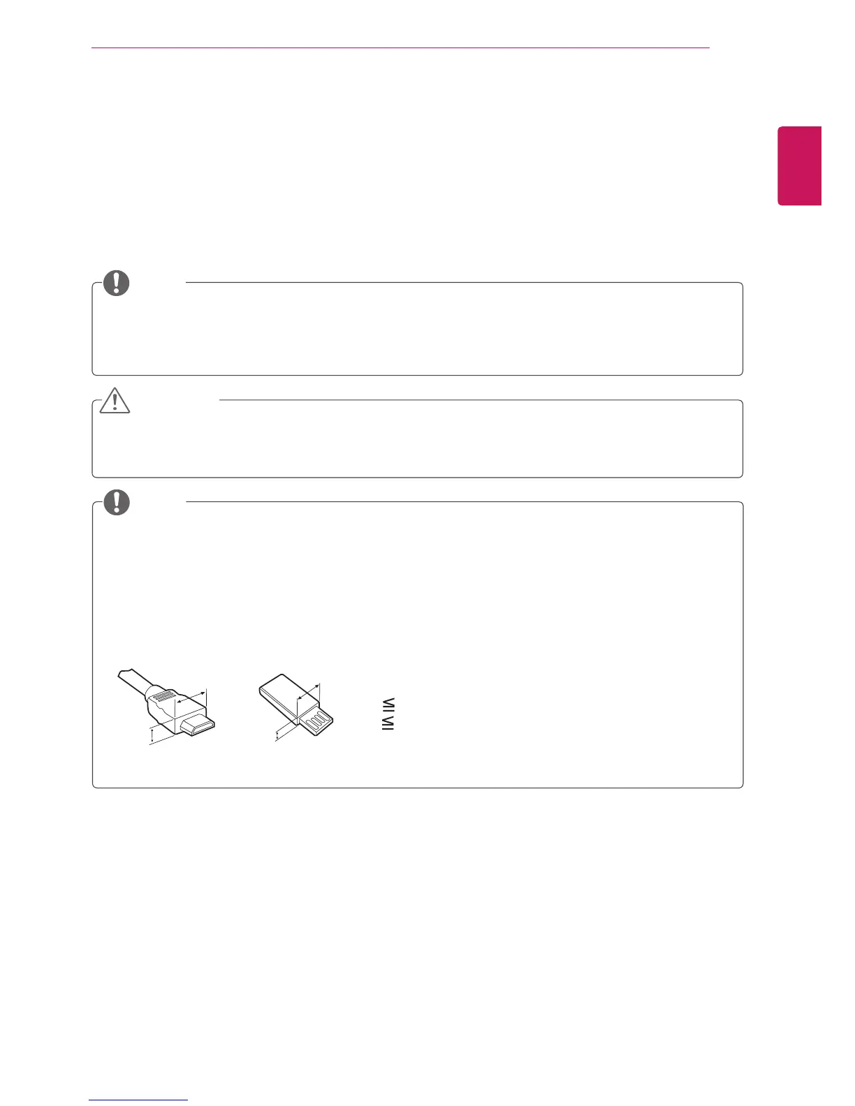 For an optimal connection, HDMI cables and USB devices should have bezels less than 10 mm thick