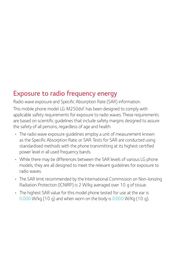 Radio wave exposure and Specific Absorption Rate (SAR) information.