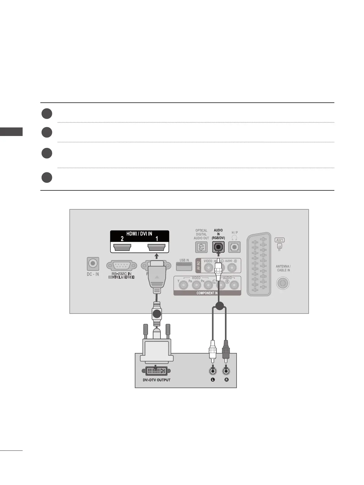 Connect the digital set-top box to HDMI/DVI IN 1 or HDMI/DVI IN 2 jack on the SET.