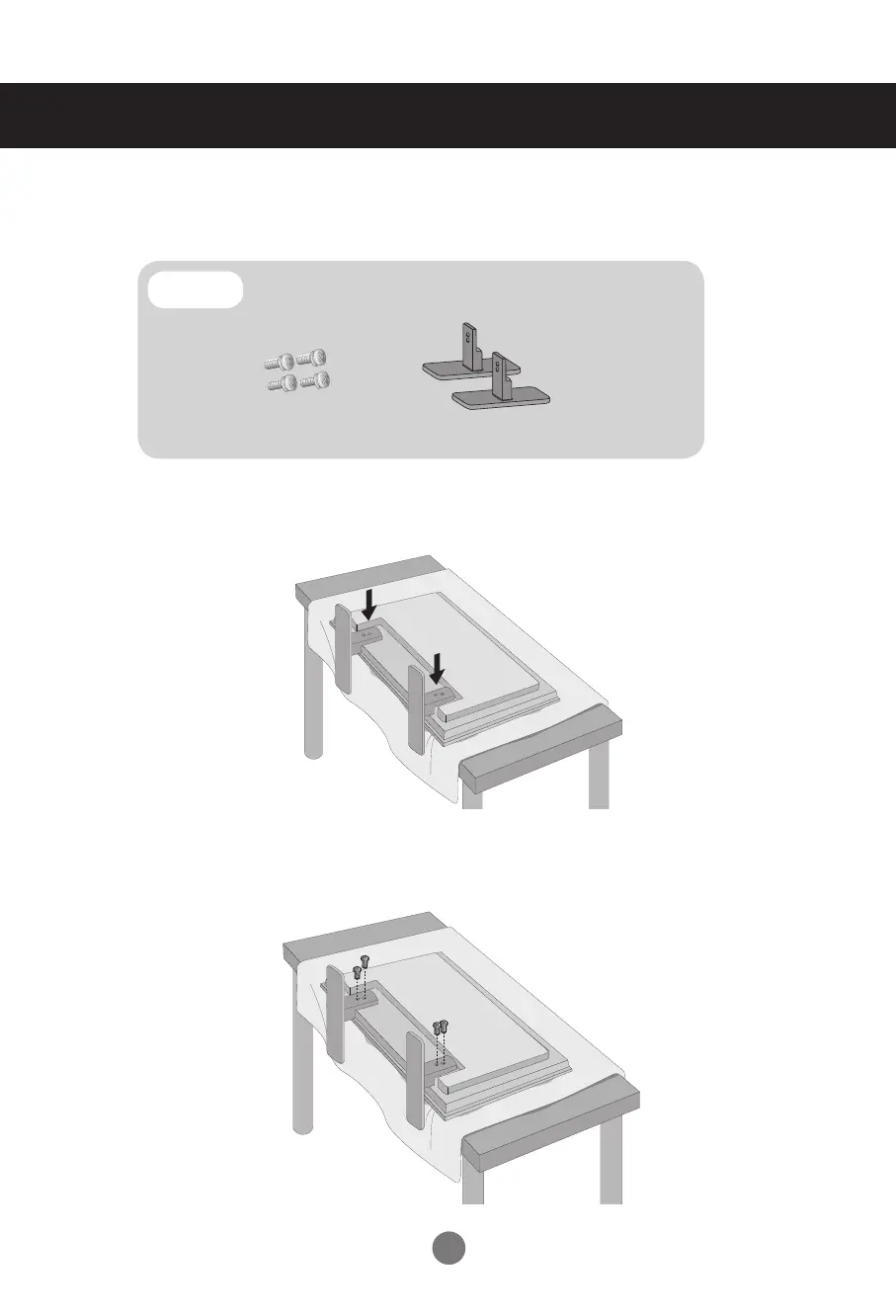 3. Use the screws to secure the stand on the rear side of the product as shown