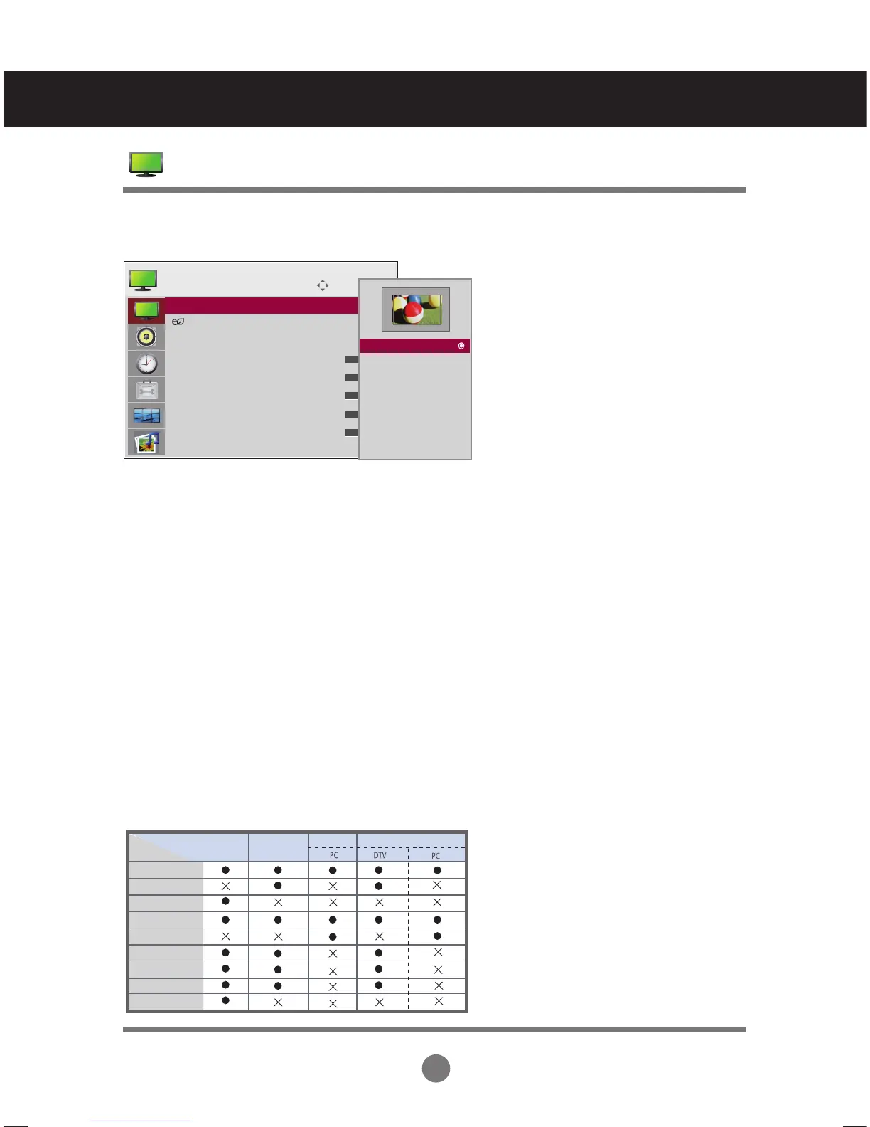 (*This menu is activated only in 720p,1080p,1080i (HDMI/DVI-DTV, Component mode)