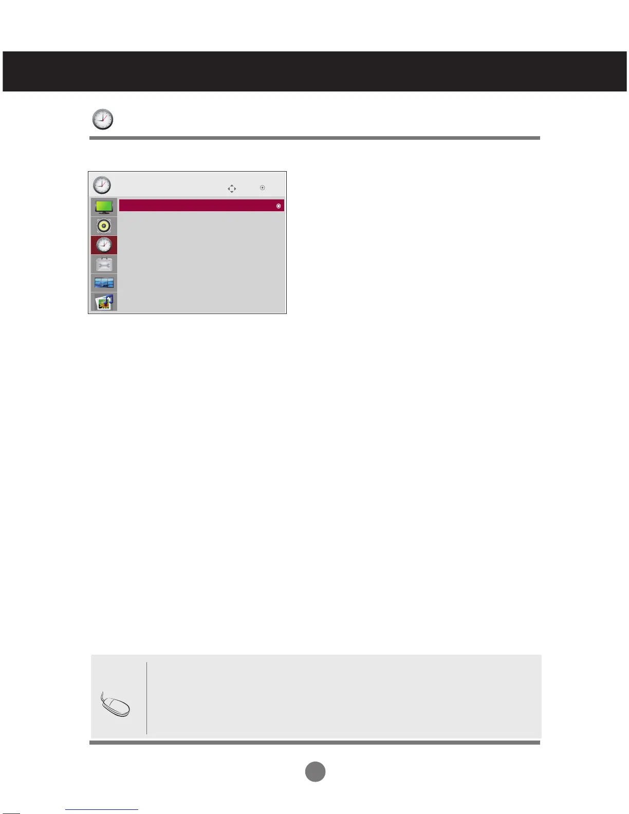 2) Press the > button and then use ∧∨ button to select clock menu .