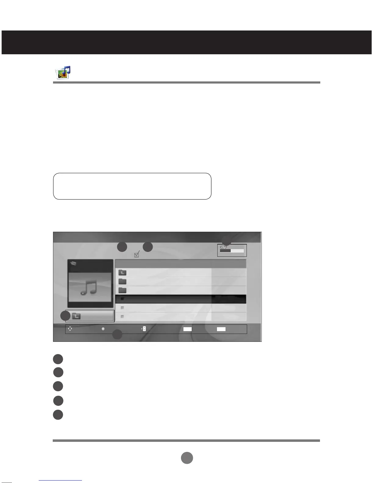 You can play music files stored on USB storage devices. Purchased music files (*.MP3) may