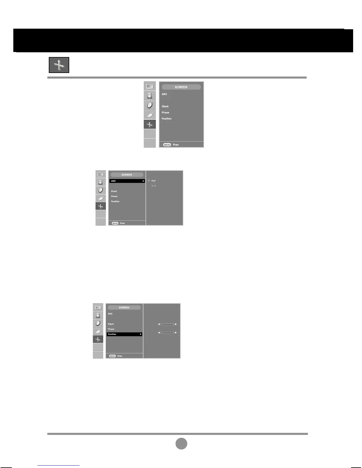 This button is for the automatic adjustment of the screen position, clock and phase.