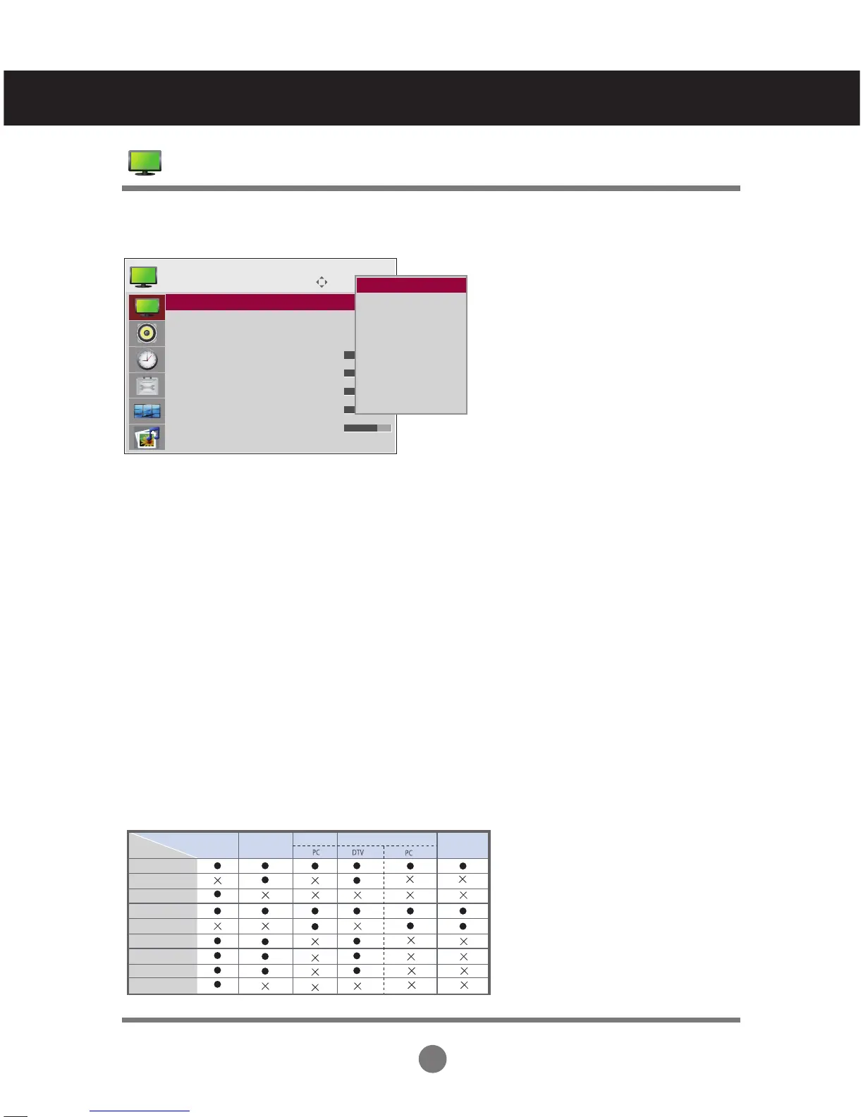 (*This menu is activated only in 720p,1080p,1080i (HDMI/DVI-DTV, Component mode)