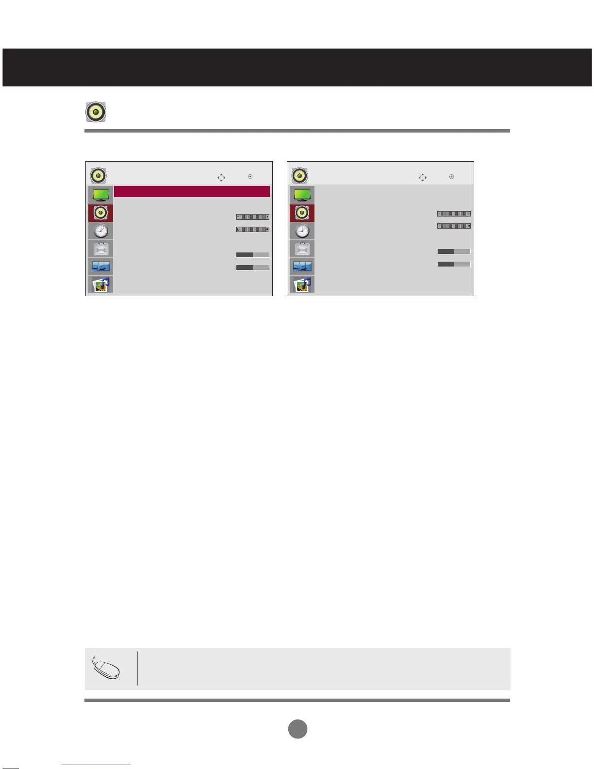 Clear Voice, Standard, Music, Cinema or Sport, the available menus are Balance,