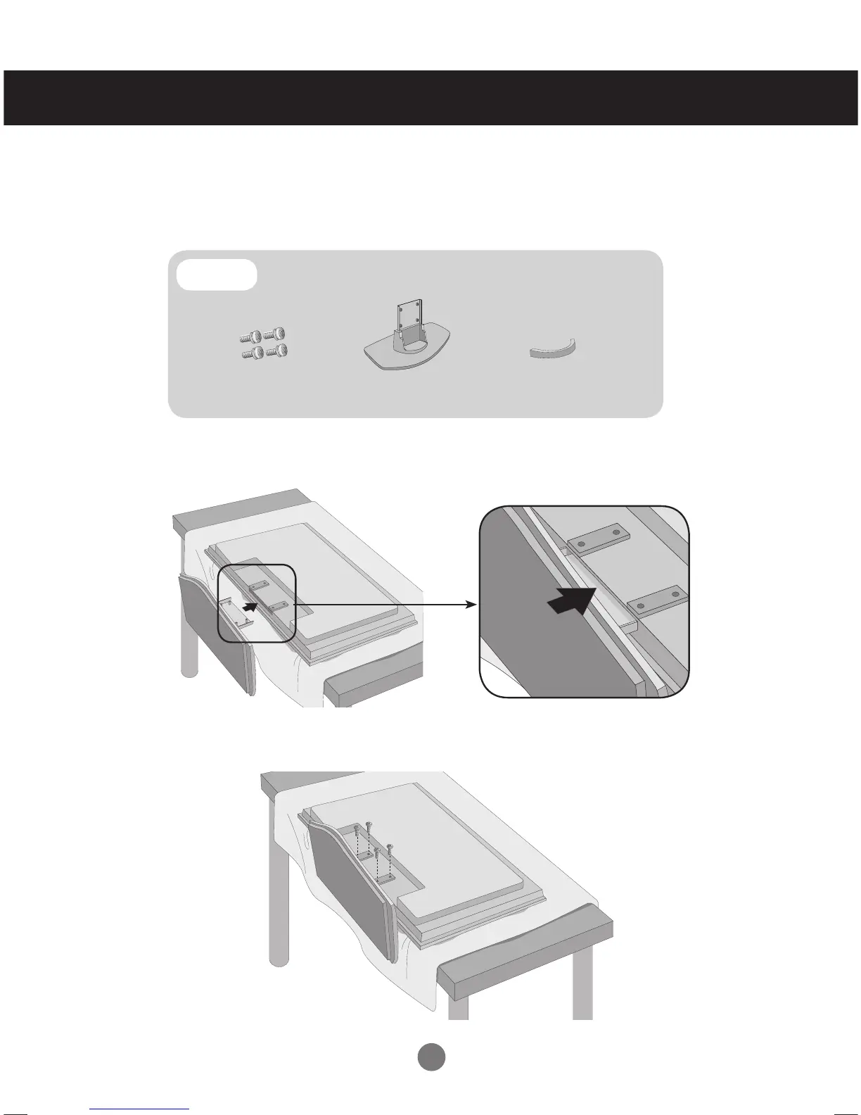 Use the screws to secure the stand on the rear side of the set as shown
