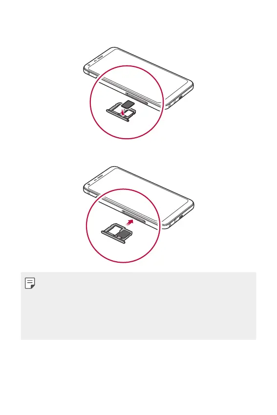 • If you insert the card tray into your device while the card tray is wet,