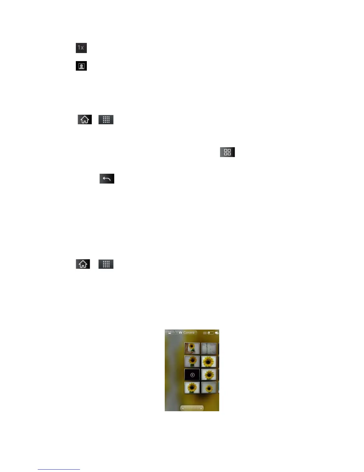 The Gallery is where you can access the Gallery of stored camera images. You can view them