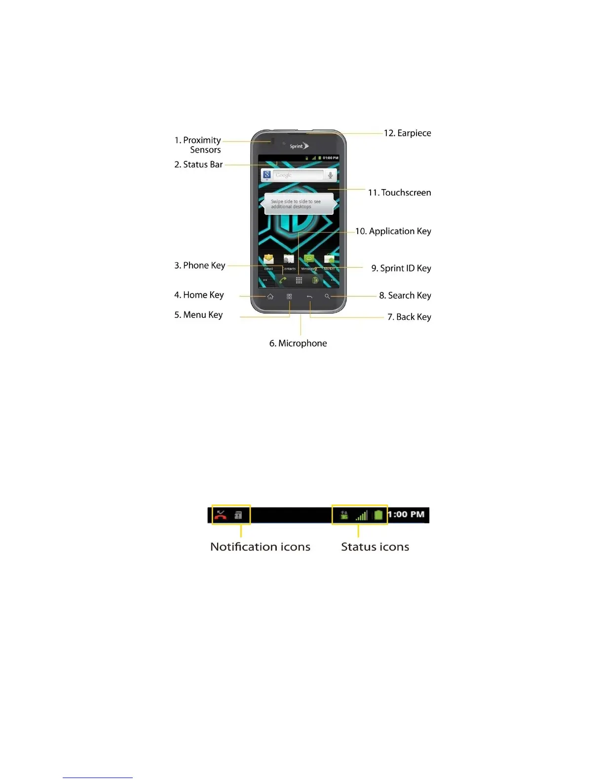 2. Status Bar provides information about your device’s status and options, such as signal