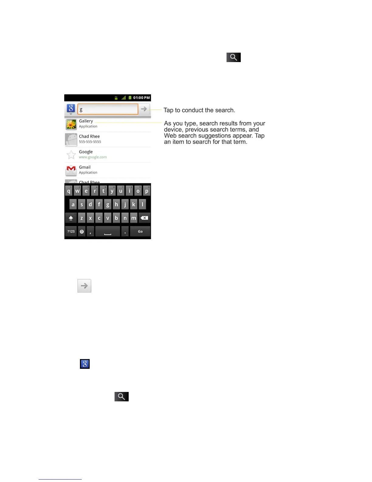 application’s own search box opens when you tap . This is indicated by the
