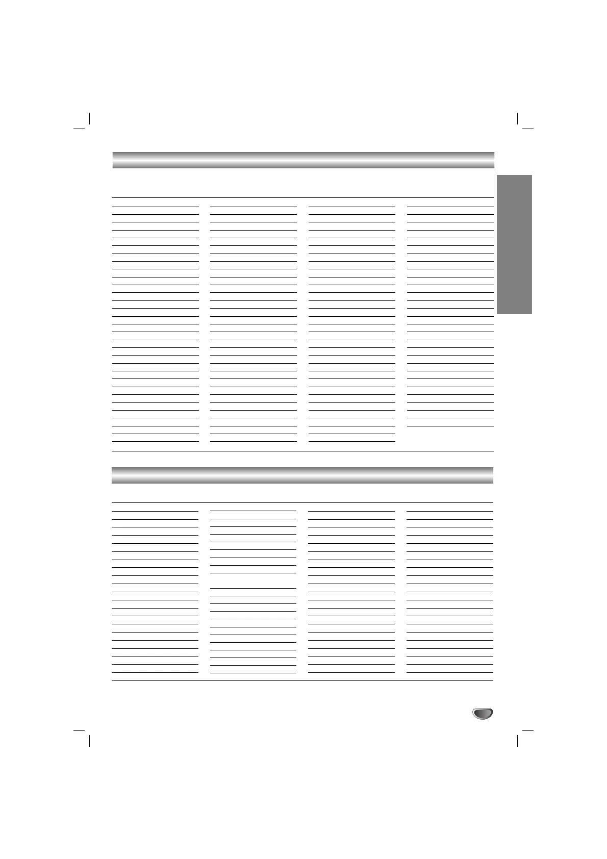 LG MDD102 - Language Code List; Area Code List