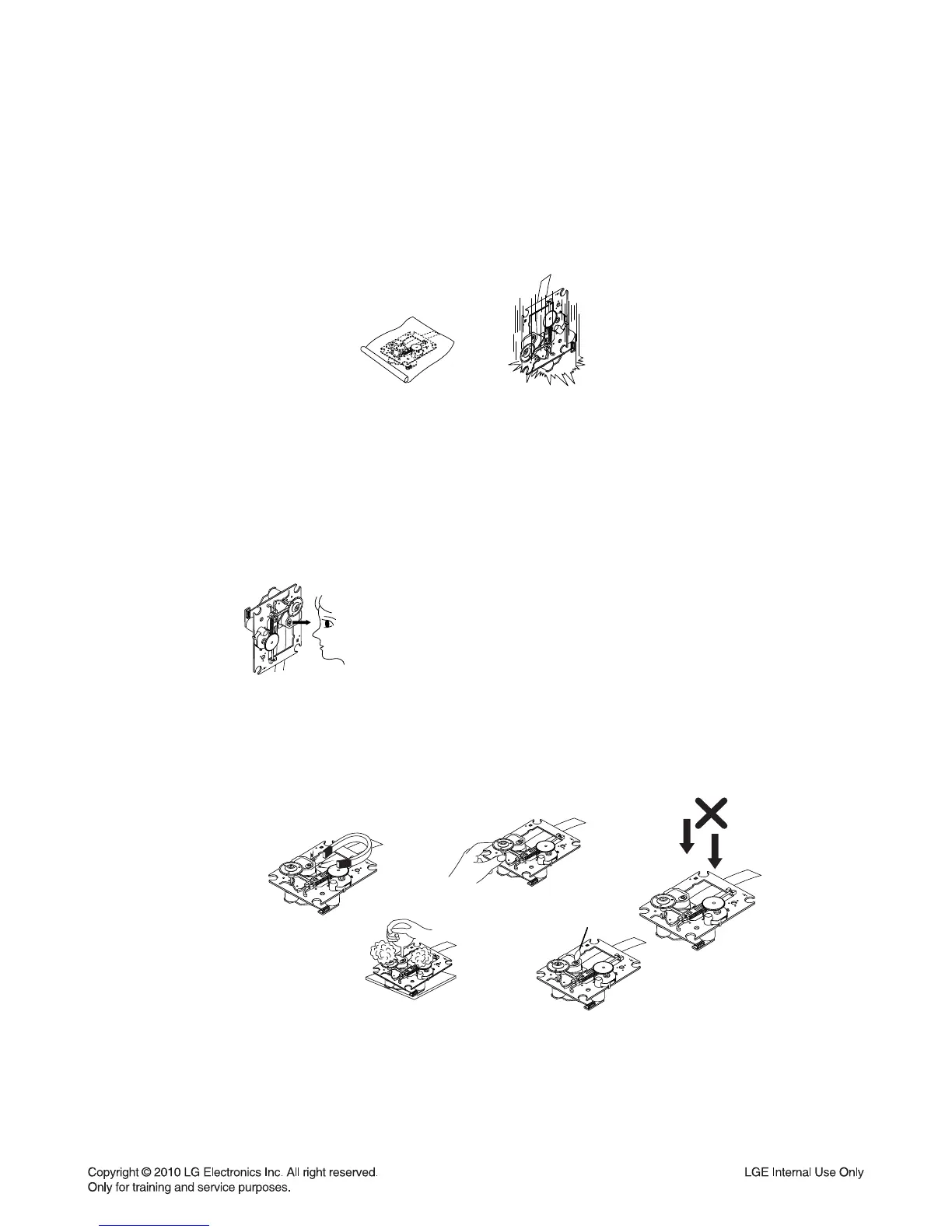 Also NEVER switch ON the power to the laser output part (lens, etc.) of the pick-up if it is damaged.
