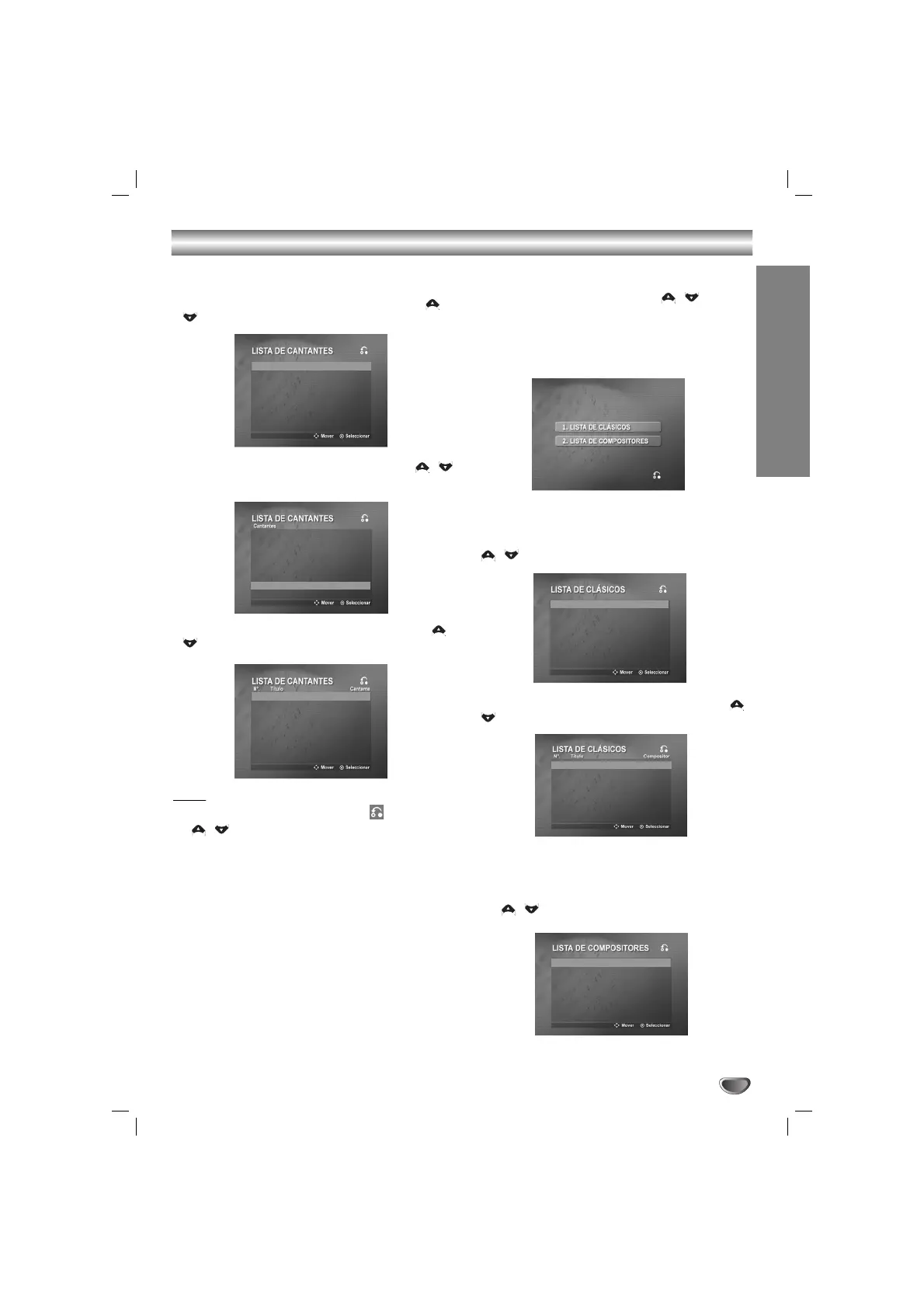 The LISTA DE CLÁSICOS and LISTA DE COMPOSI-