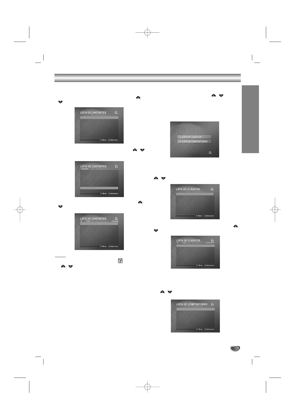 The LISTA DE CLÁSICOS and LISTA DE COMPOSI-