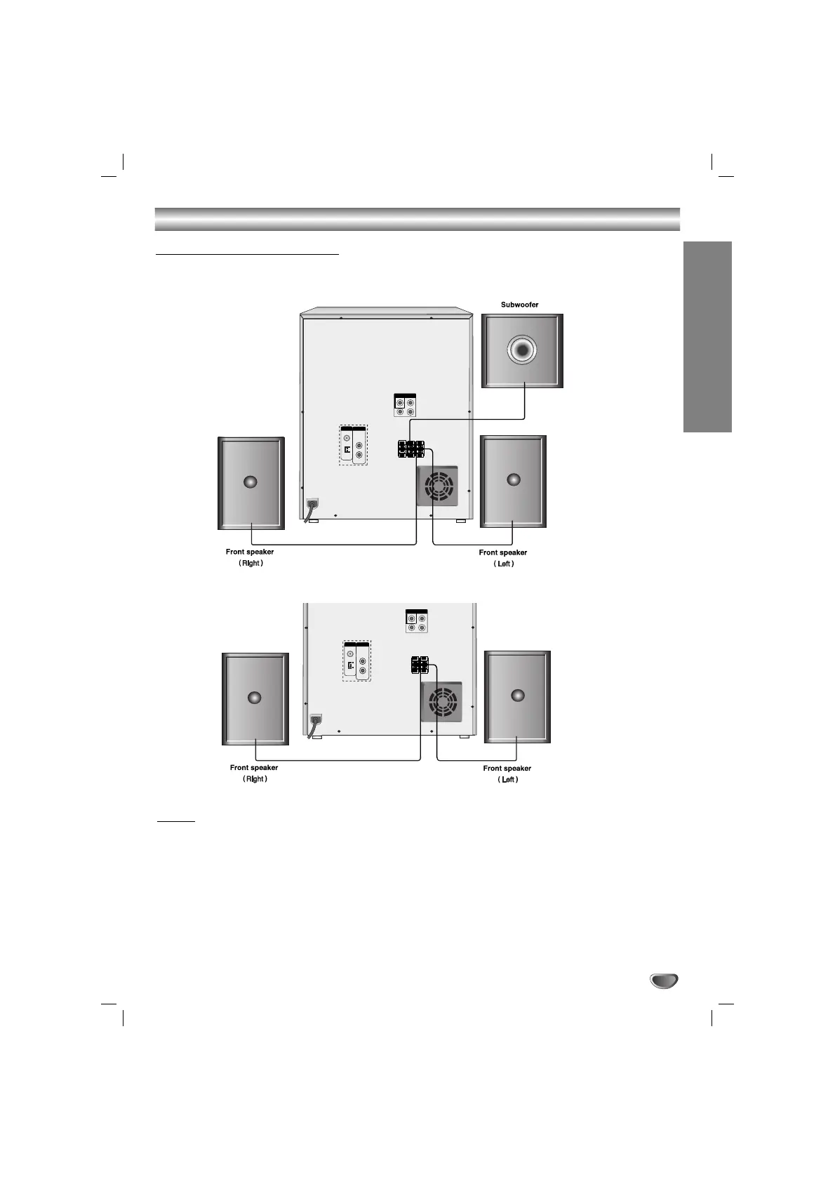 • Connect the Front Left/Right speaker correctly. If it is reversed, the sound may be distorted.