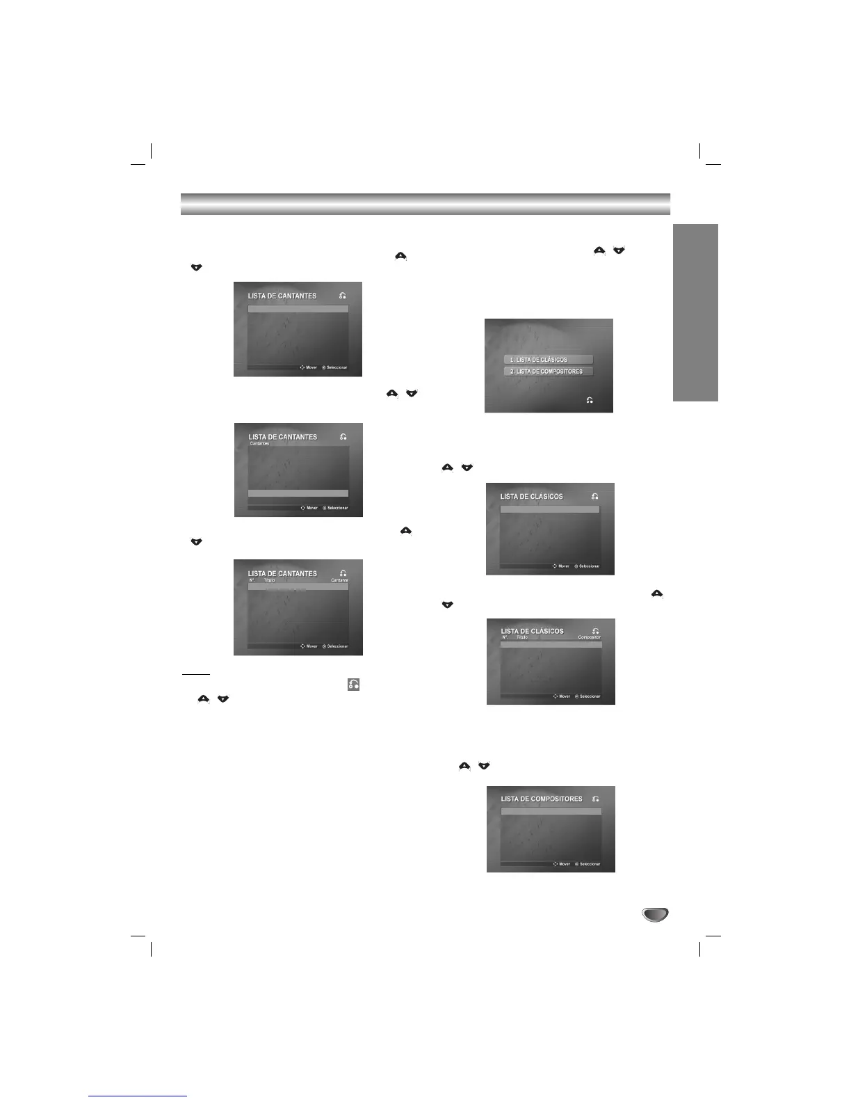The LISTA DE CLÁSICOS and LISTA DE COMPOSI-