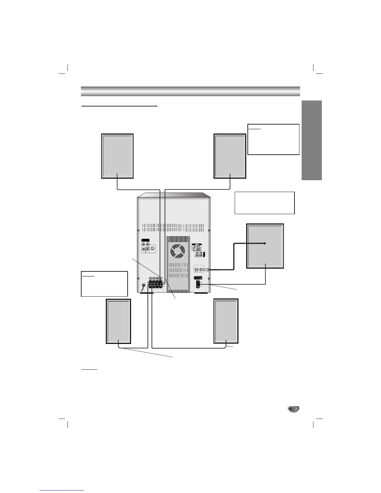 cords. To obtain the best possible surround sound, adjust the speaker parameters (distance, level, etc.).